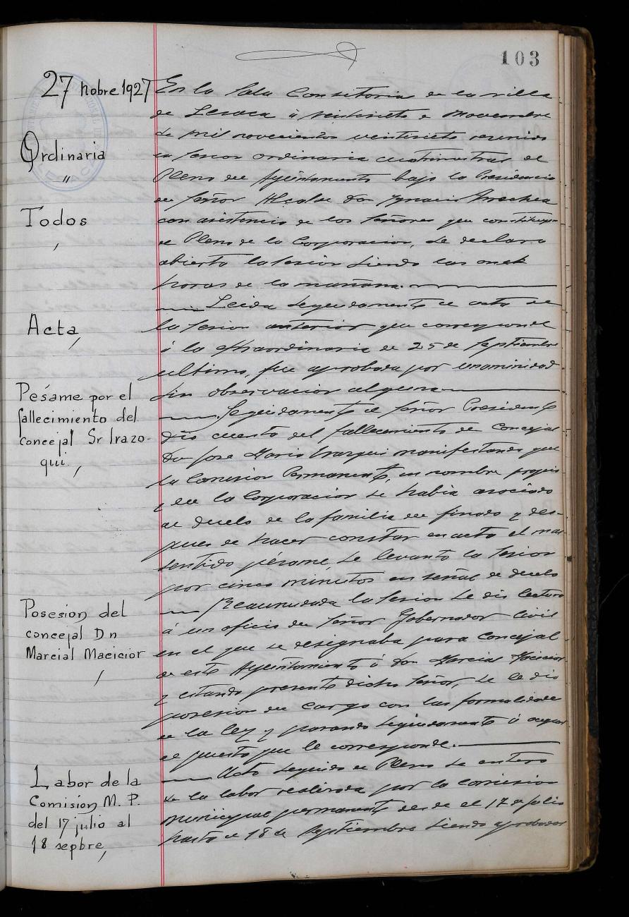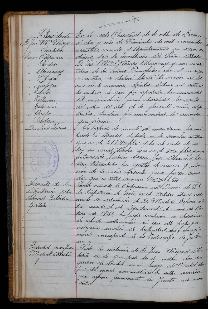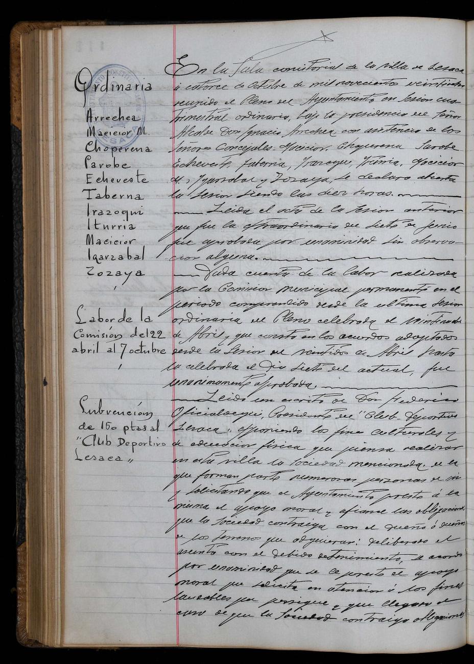 Osoko Bilkuraren Akta Liburua (1923-10-05 / 1931-10-25)