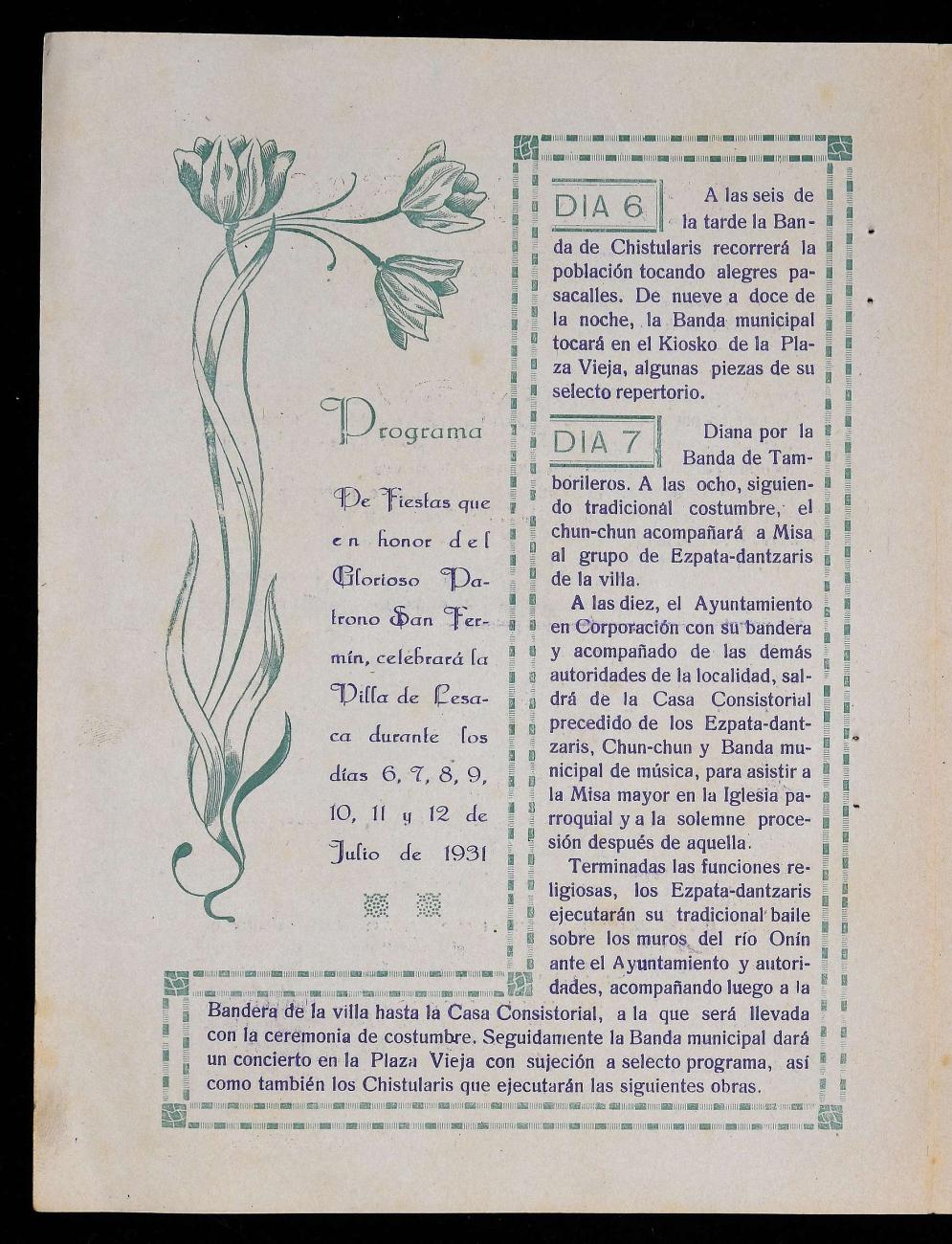 San Fermin Jaien programa (1931)