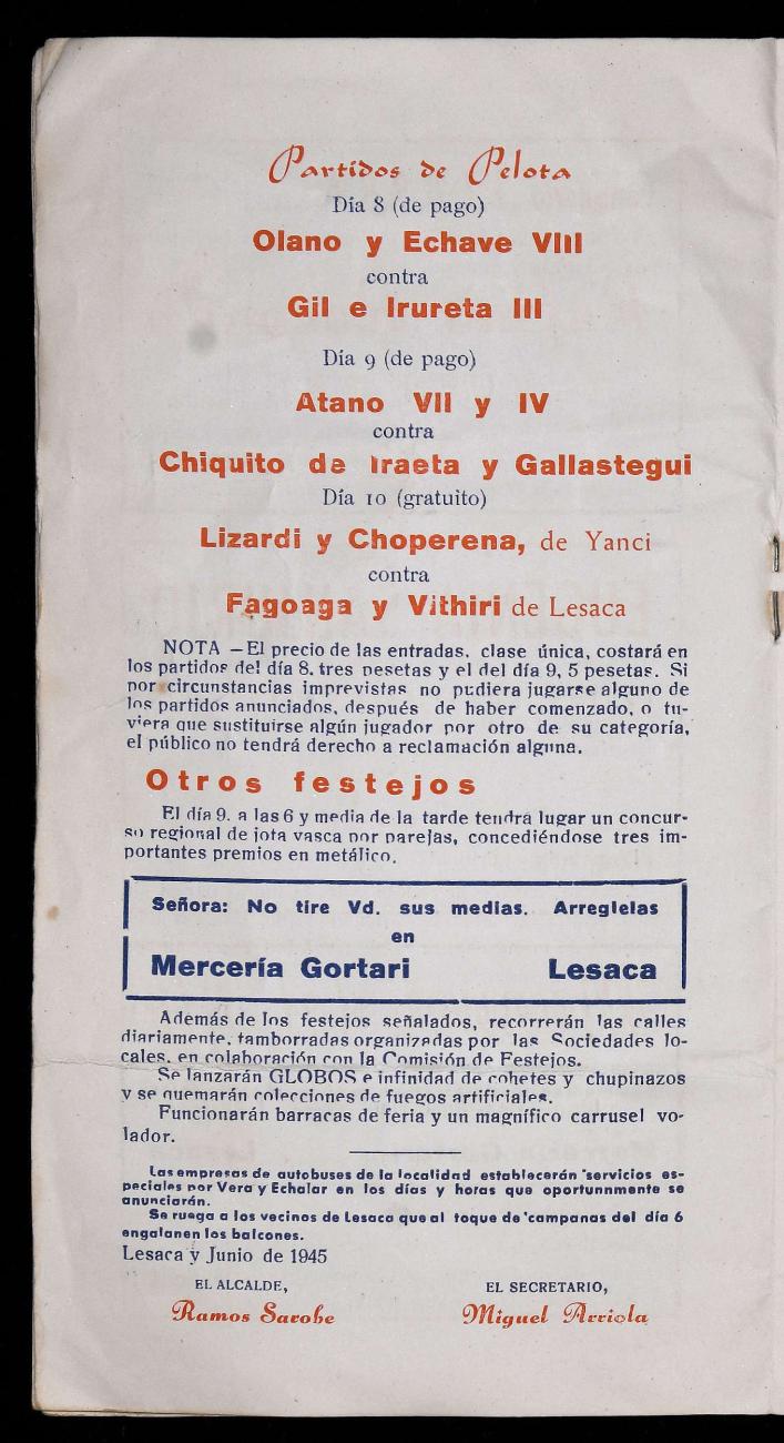 San Fermin Jaien programa (1945)
