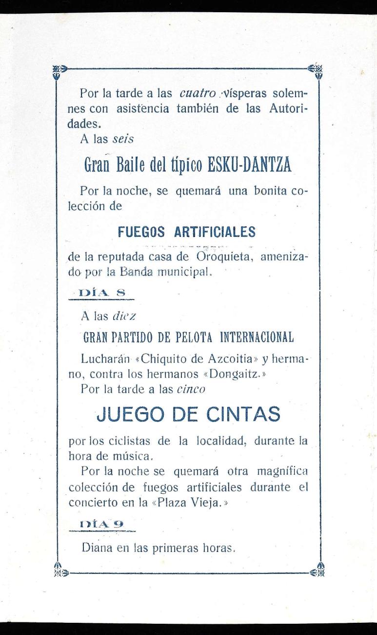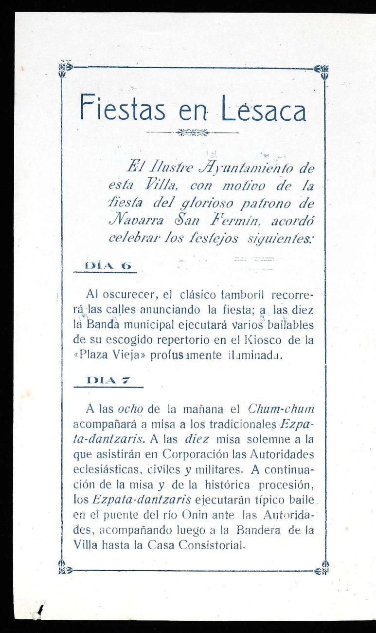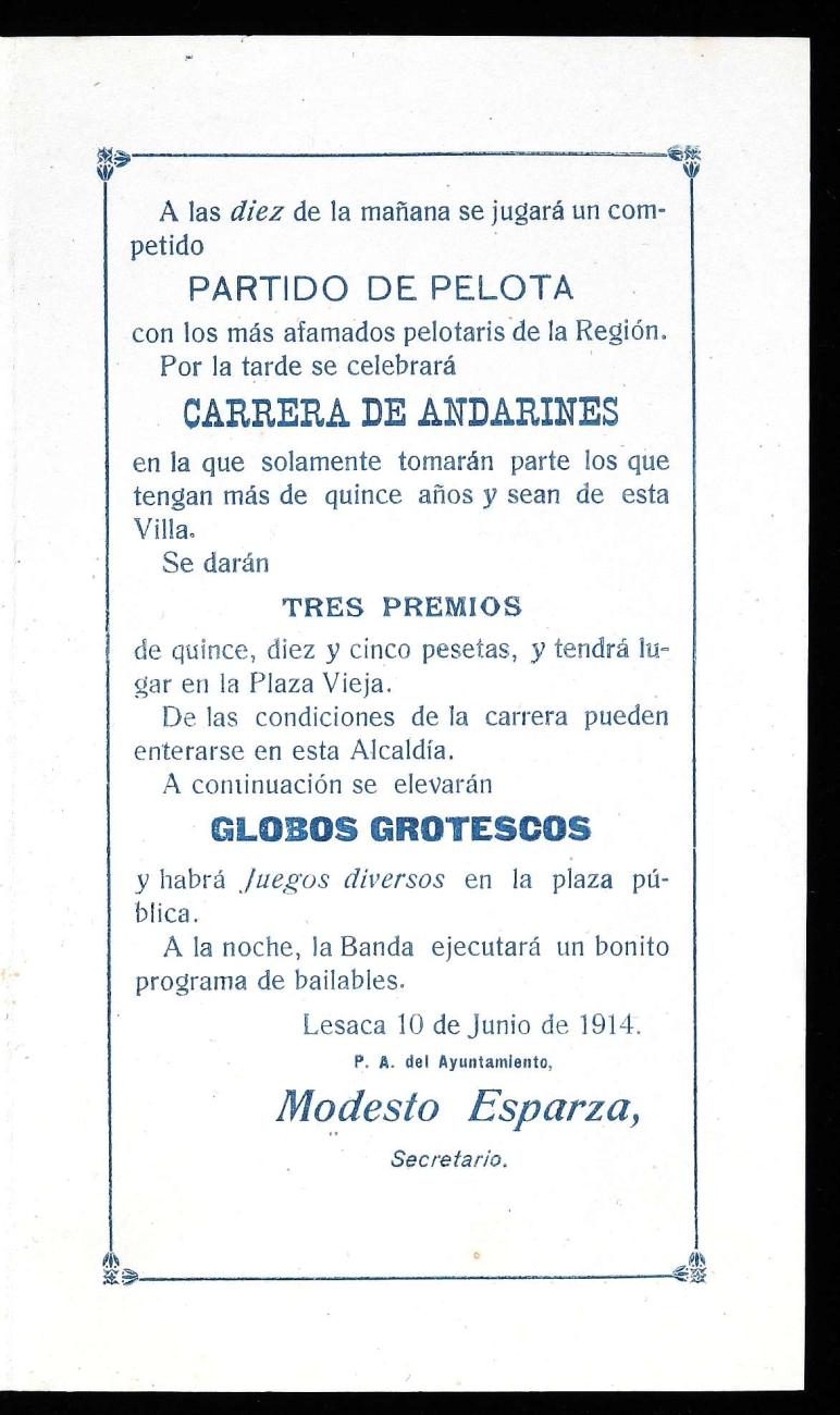1914 urteko Lesakako jaietako programa.