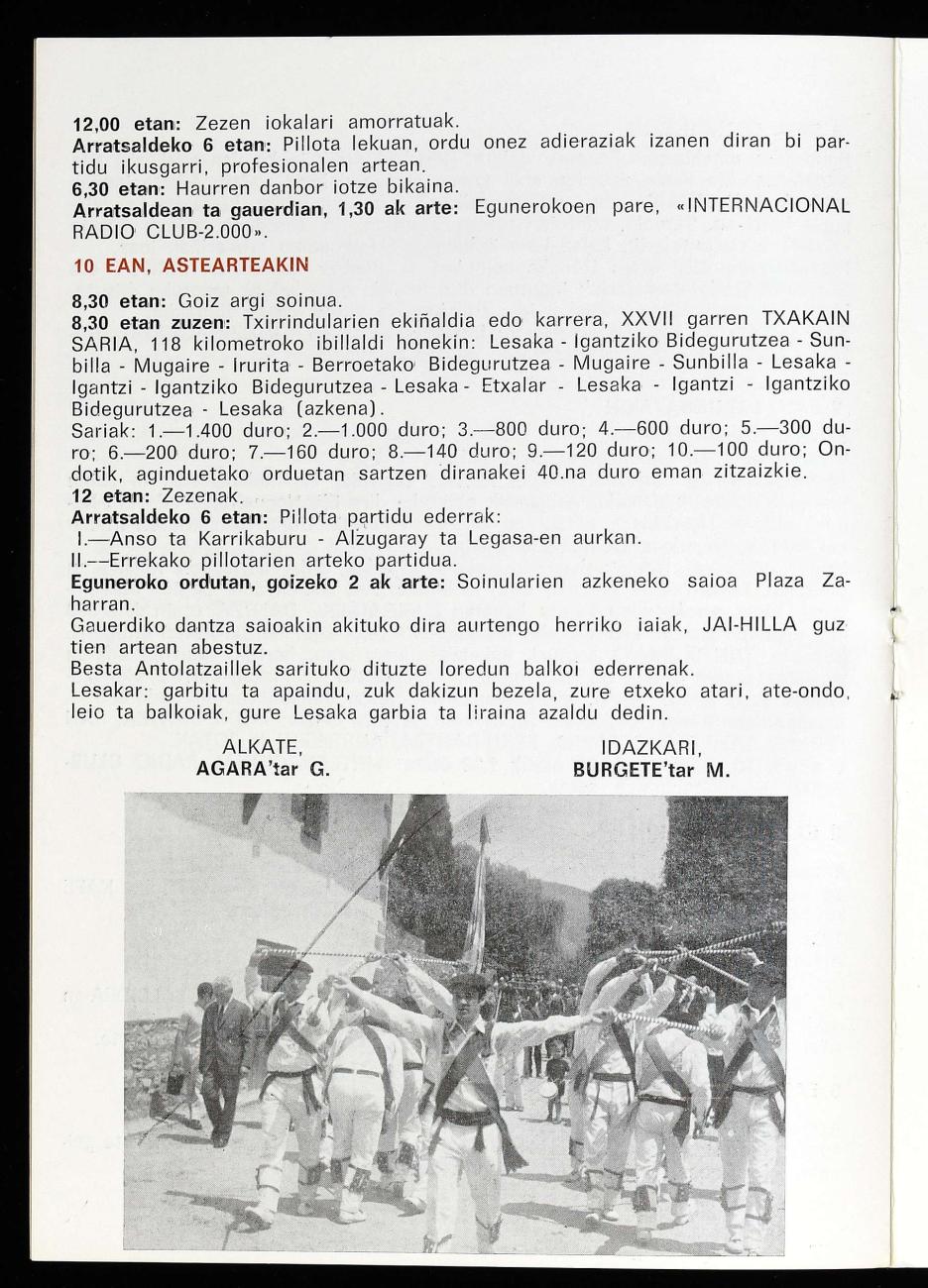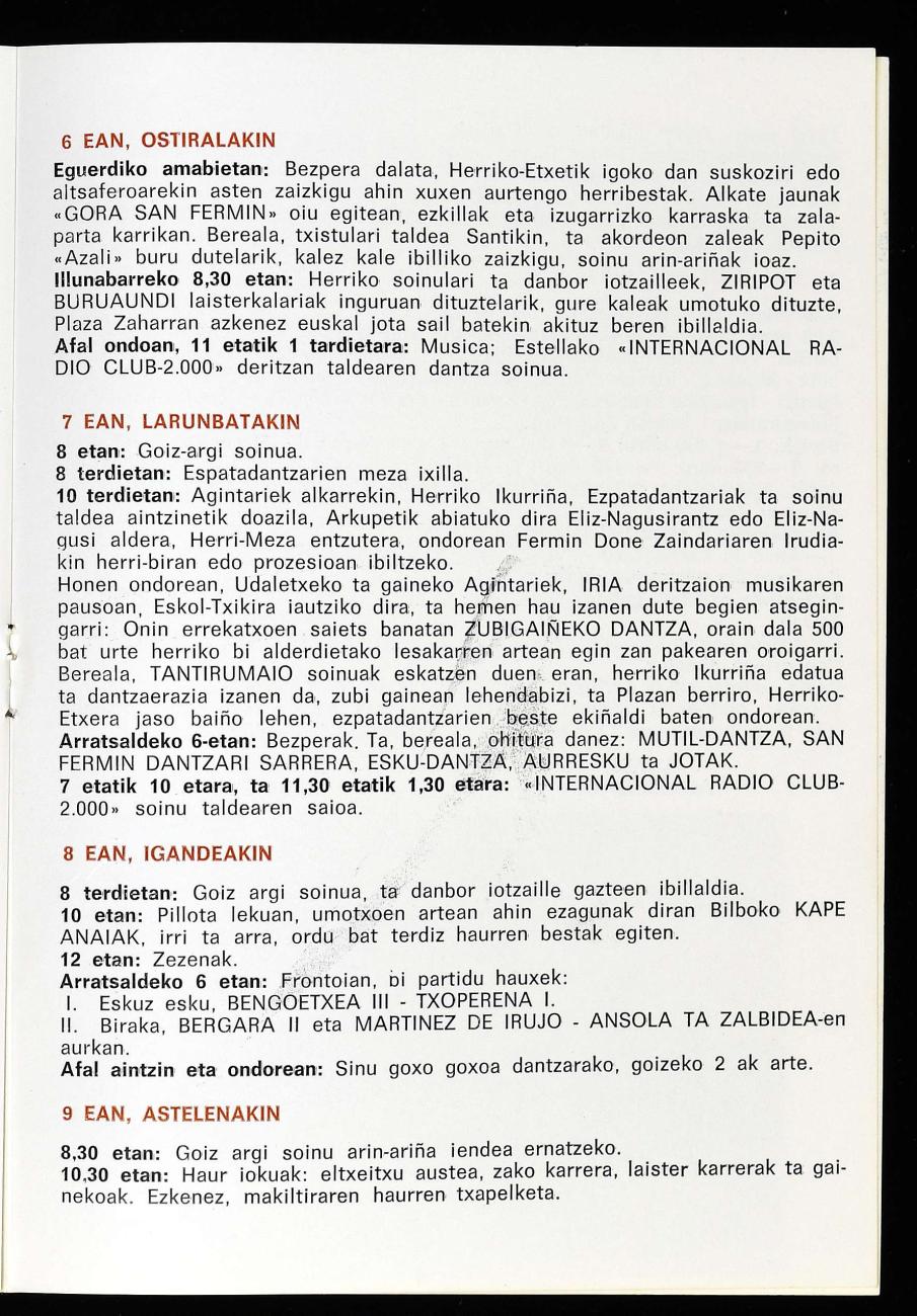 Bertan jaien programa eta pilota partiduen programazioa daude