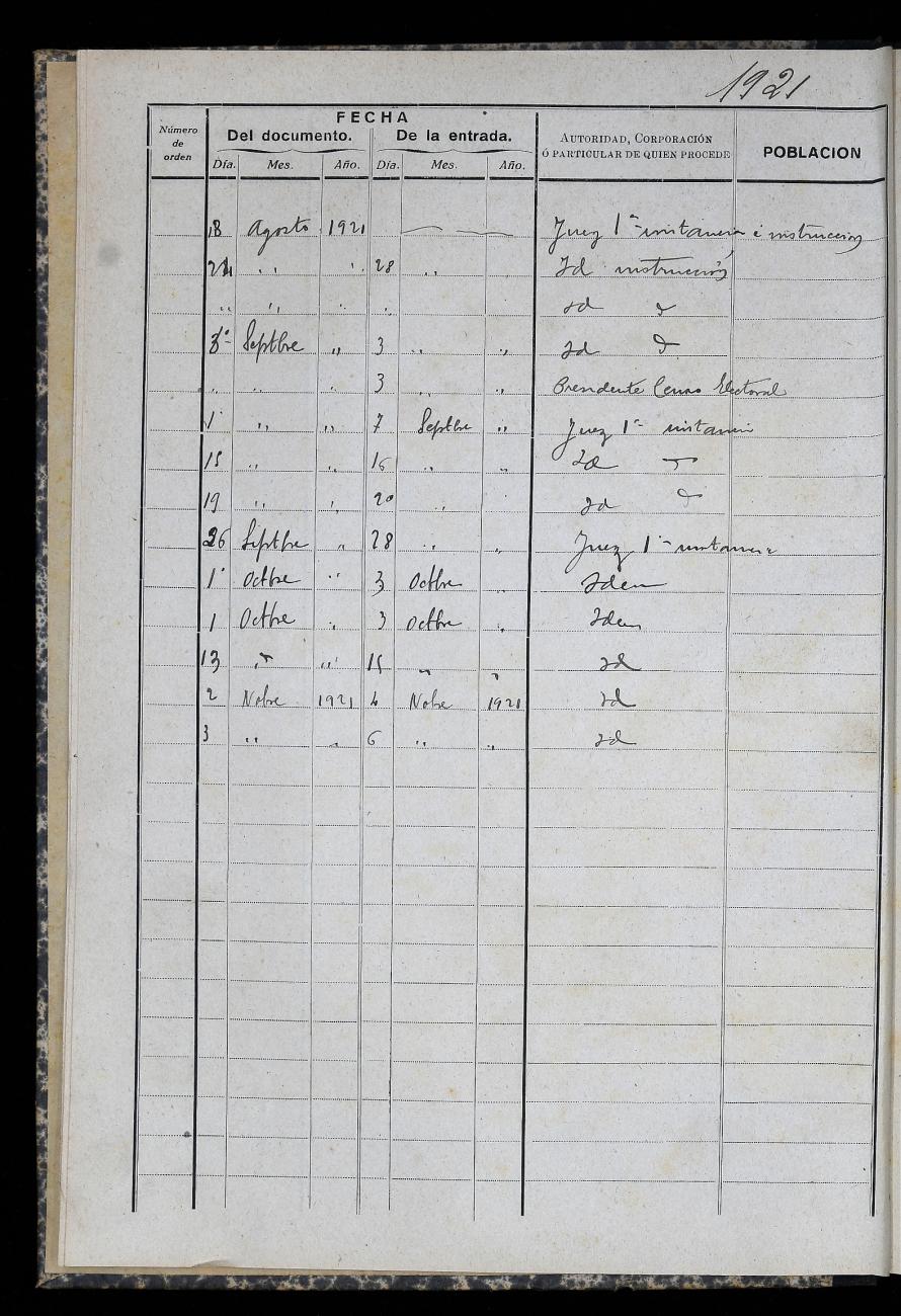 Sarrera Erregistro Liburua (1921)